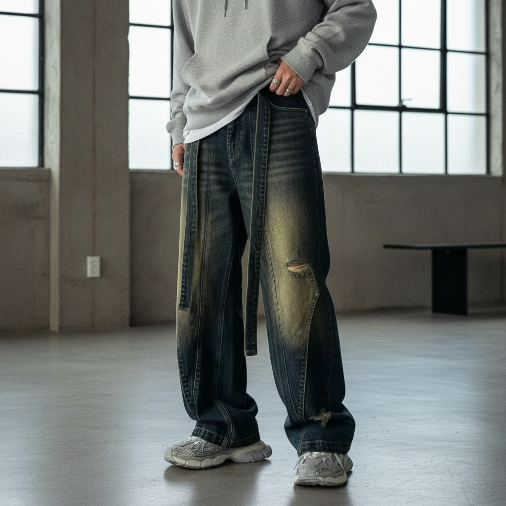 Made in China, these jeans sport a fun retro distressed style that brings vintage vibes to your casual look. The all-match straight leg cut pairs effortlessly with any top, while the washed stitching adds a cool, lived-in feel. Designed with a comfy mid-waist fit, they’re perfect for everyday adventures with a touch of nostalgic flair.