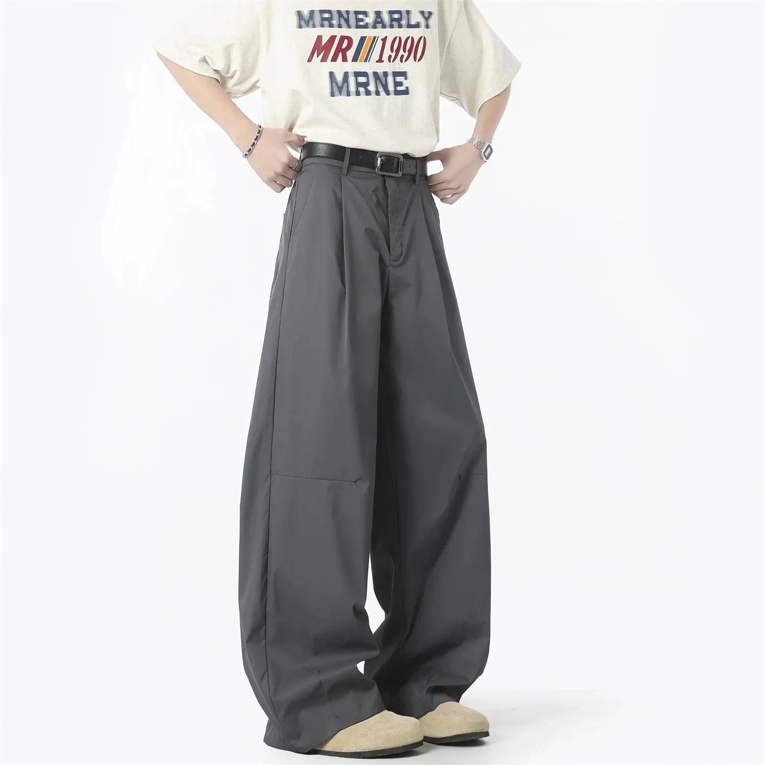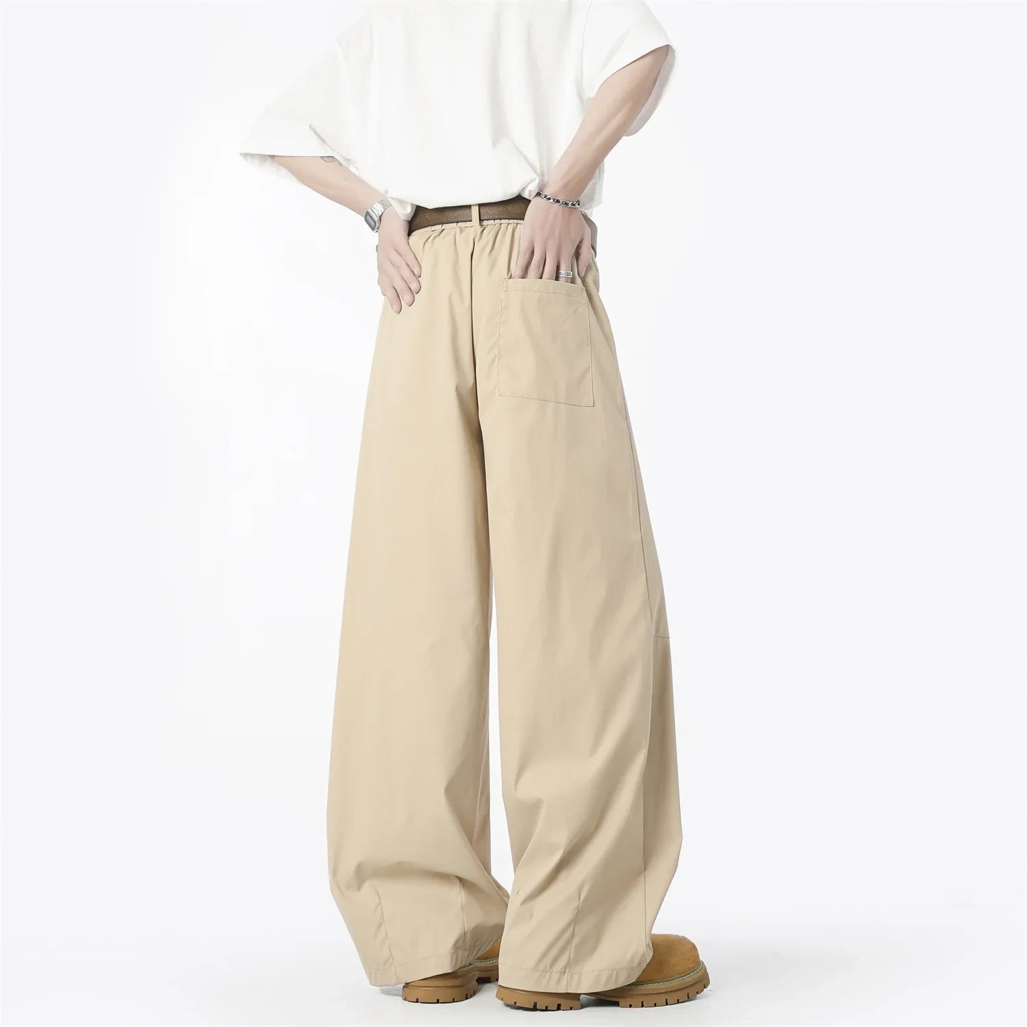Meet your new favorite pants: these American Retro High-Waist Trousers blend style and comfort effortlessly. Crafted from polyester fiber, they feature a fun ruched scimitar detail that gives your outfit a unique edge. The loose wide-leg fit ensures you can move freely while looking sharp, and the high-end cleanfit design keeps things sleek and polished. Perfect for casual outings or a relaxed day at work, these trousers add a playful twist to any modern man's wardrobe.