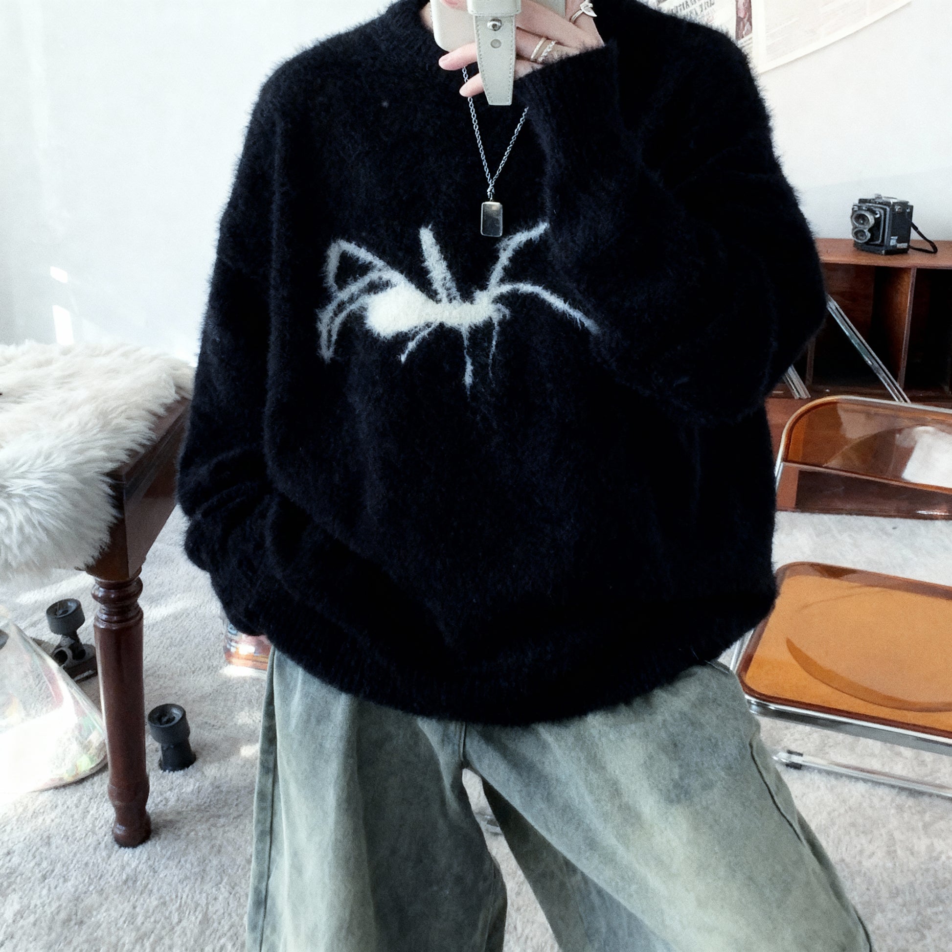 Get cozy in this playful Spider Knit Sweater, perfect for chilly winter days. With its oversized fit and soft knit, warmth and comfort are guaranteed. The eye-catching spider jacquard adds a fun twist to your casual look, while the classic crew neck keeps things timeless. Whether you're lounging or out and about, this sweater brings a stylish, laid-back vibe with a dash of spooky charm.