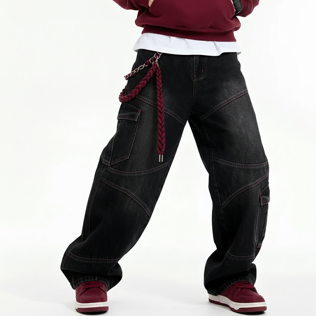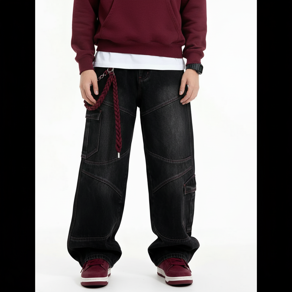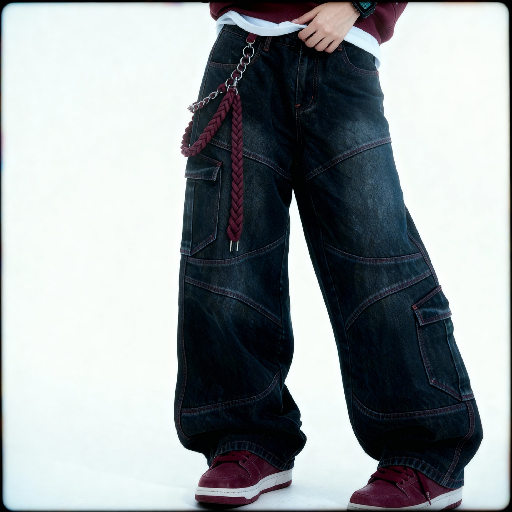 Get ready to turn heads with these American Street Retro Wide-Leg Jeans! Designed for daily wear and perfect for all seasons, they boast a bold patchwork style with eye-catching red stitching. The ultra-baggy fit delivers unbeatable comfort and a standout silhouette, ideal for hip-hop fans or anyone craving a fresh streetwear vibe. Multiple pockets keep your essentials handy without sacrificing style. Made from soft, durable denim, these jeans are your go-to for casual days or nights out. Embrace the Y2K Street style and add some swagger to your wardrobe today!