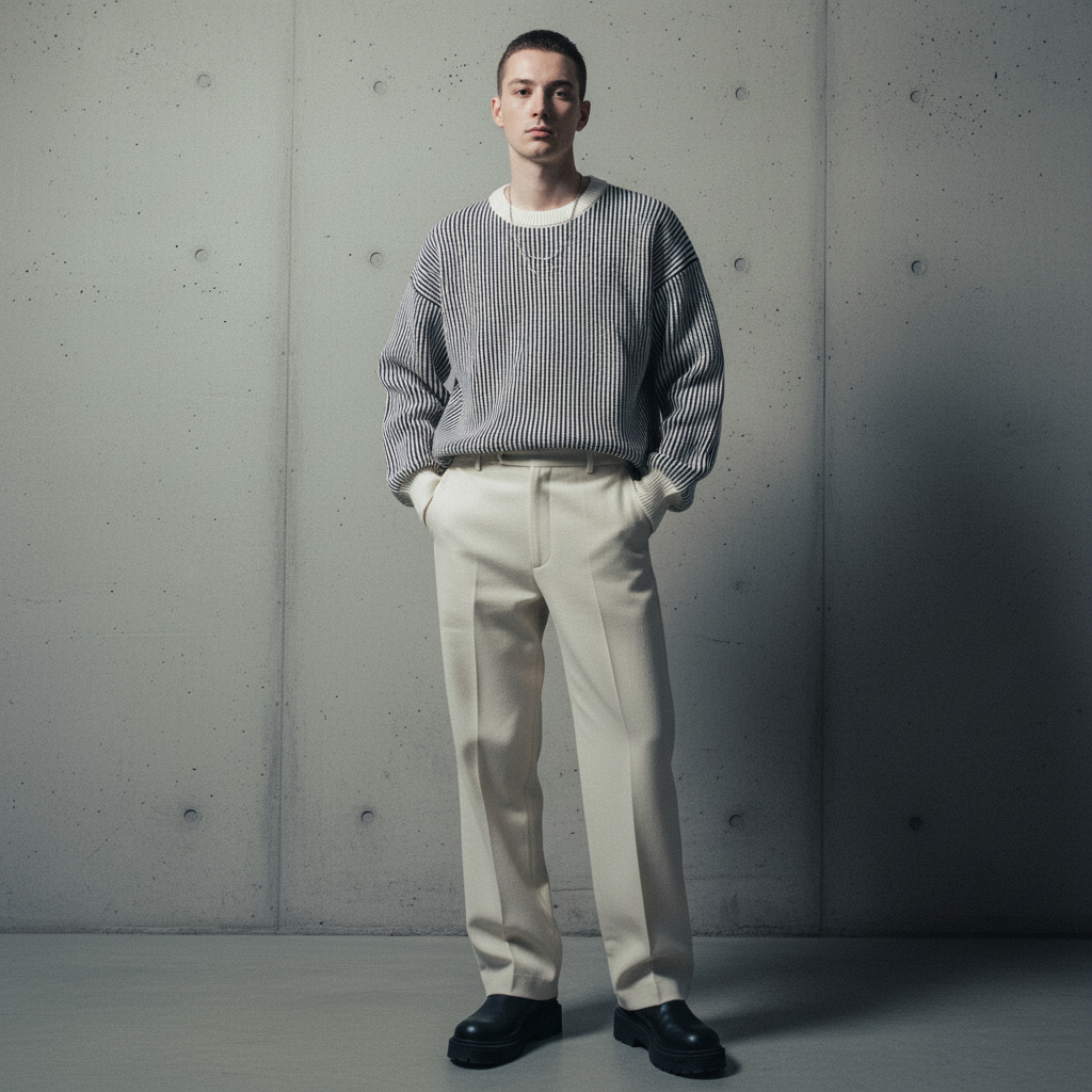 This striped crew neck knitwear features a loose fit designed for comfort and unrestricted movement, ideal for daily wear. Inspired by retro Japanese fashion, it delivers a distinctive and stylish look suited for autumn and winter. Crafted for cooler seasons, it offers warmth without sacrificing style. The straightforward pullover design ensures effortless dressing, while its versatile nature allows it to complement a wide range of outfits, making it a practical and fashionable staple in any wardrobe.
