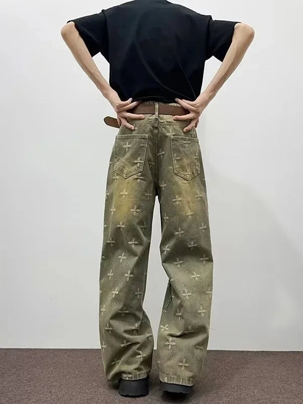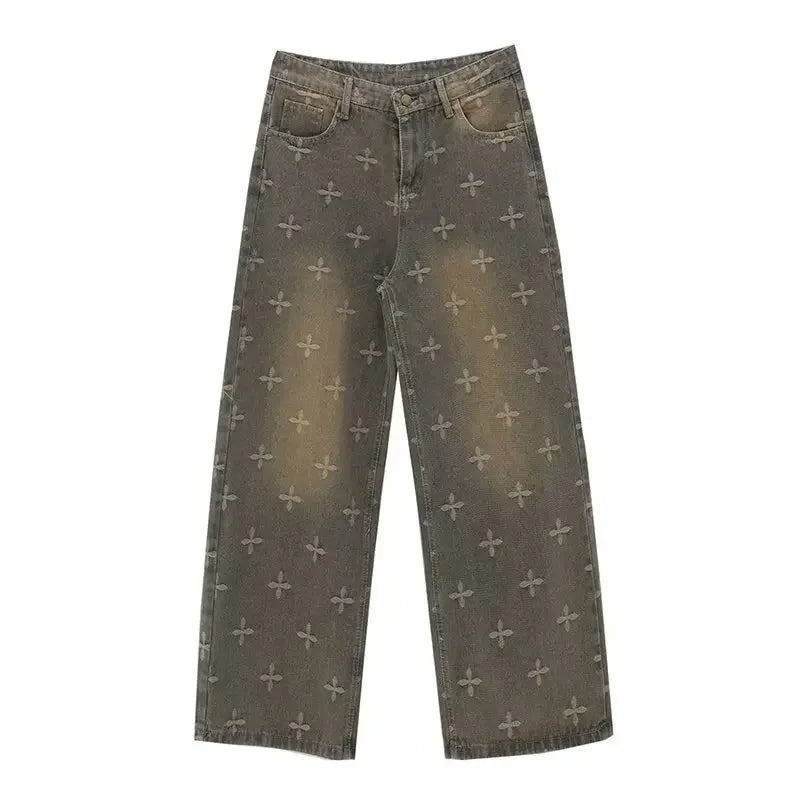 These high-waisted jeans from NoEnName_Null, crafted with care in China, bring a fun twist to your wardrobe. Featuring a bold heavy industry cross star print, they’re sure to turn heads wherever you go. The loose, straight-leg cut lets you move with ease, perfect for any casual adventure. With a vintage washed look, these jeans give off serious retro vibes while highlighting your curves in all the right ways. Embrace comfort and style in one playful package!